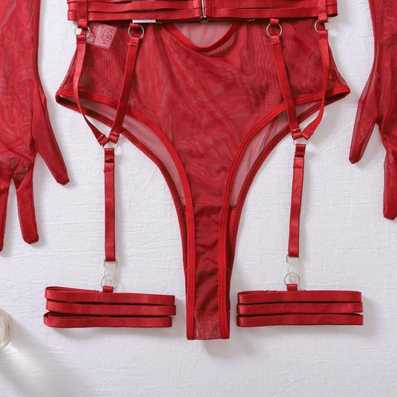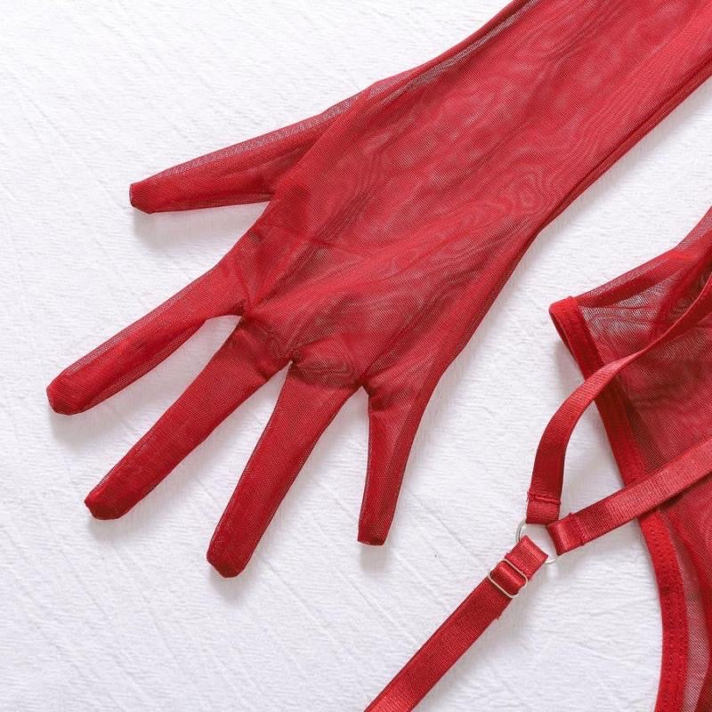 Set de 6 piezas. Body, liguero, 2 ligas y el par de guantes.