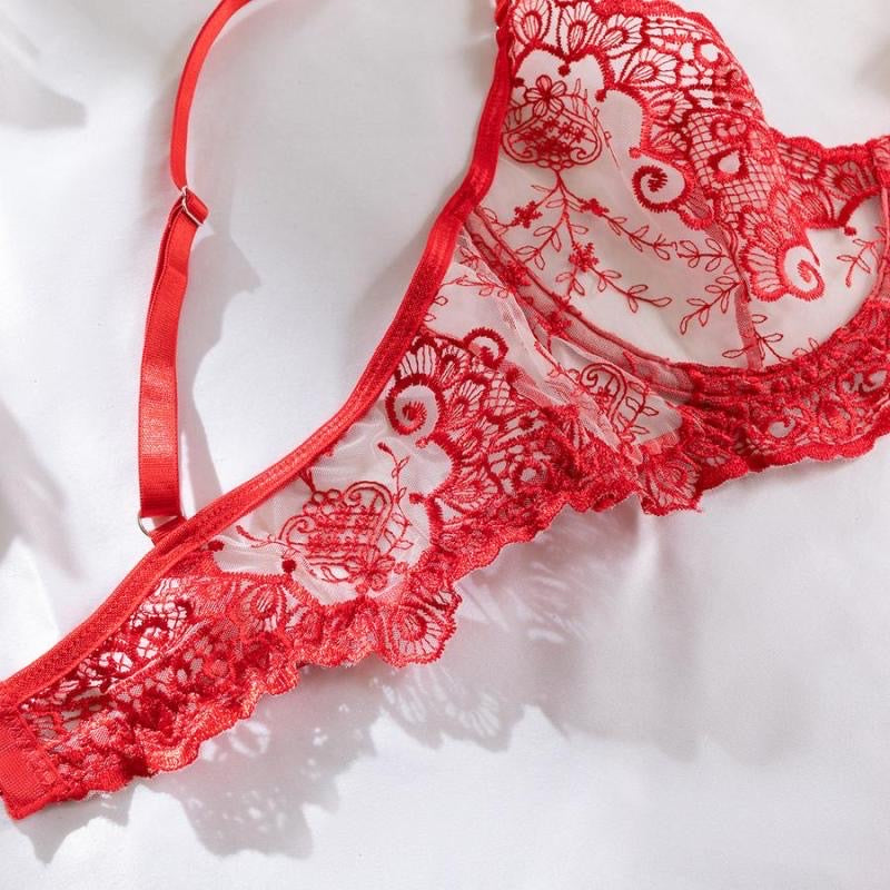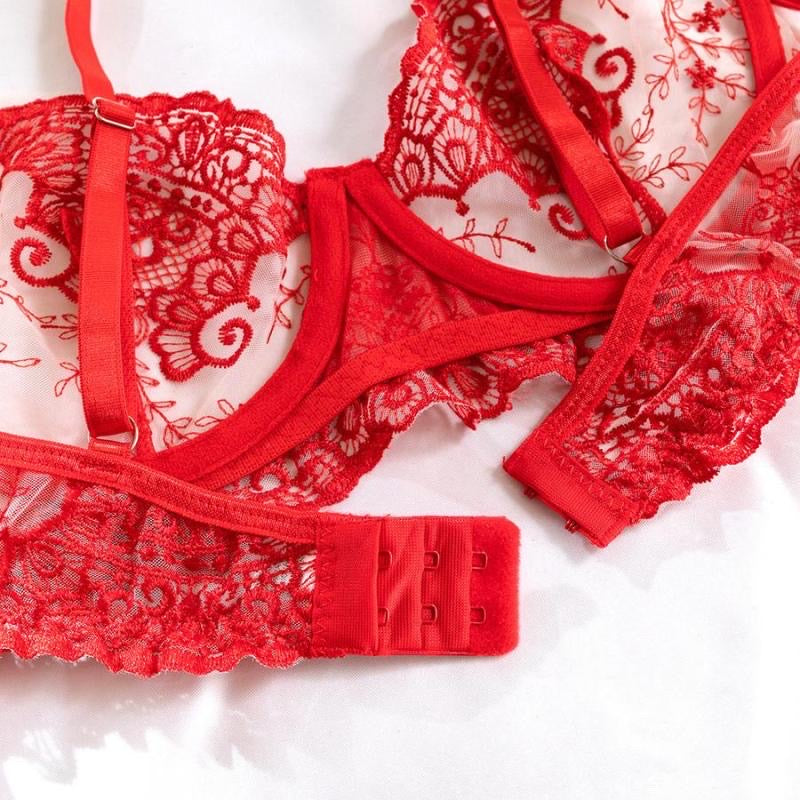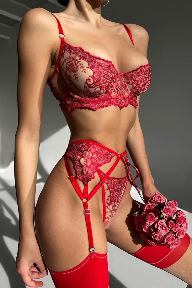 Coordinado bordado con liguero