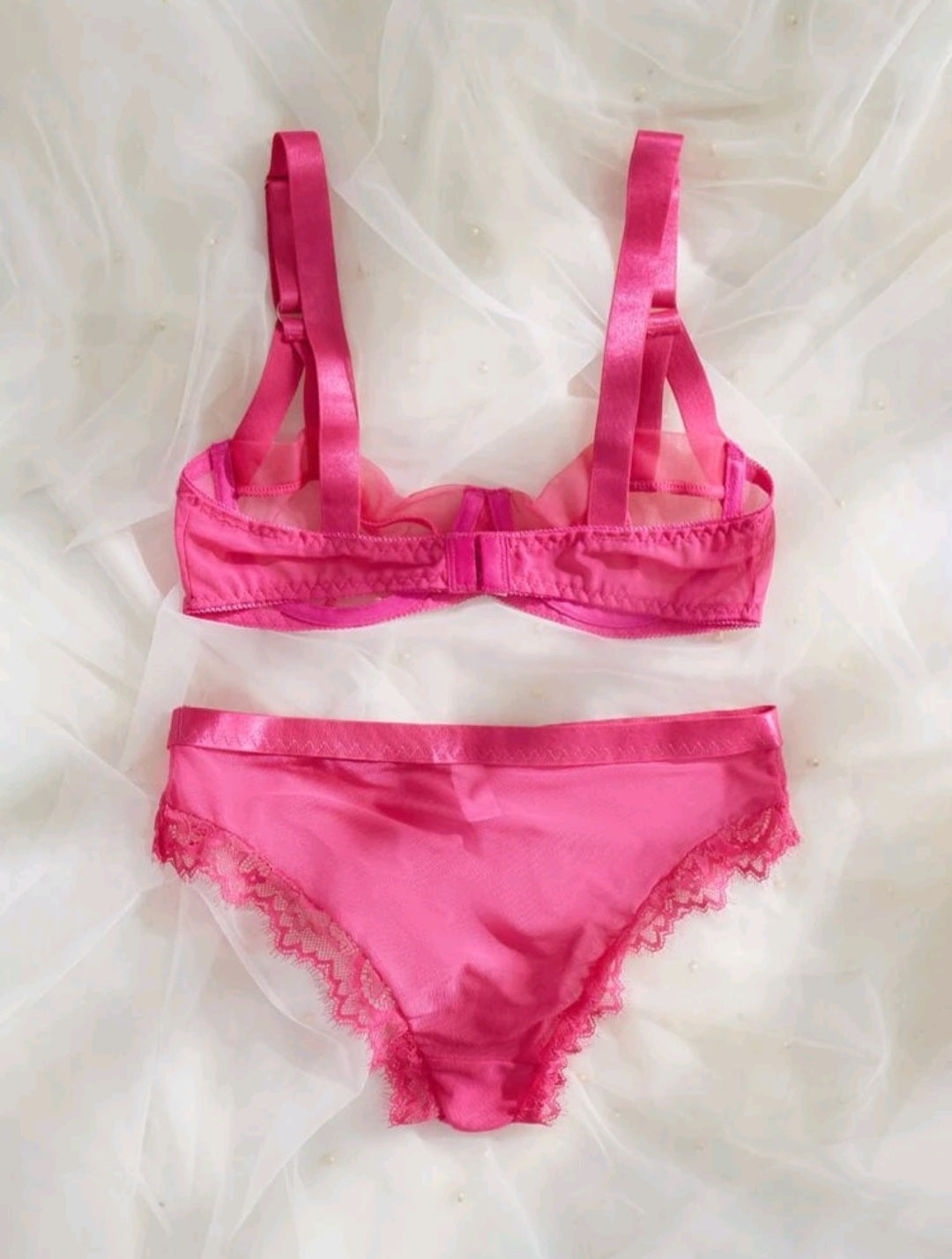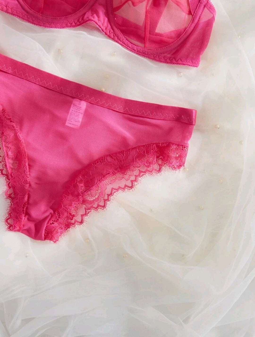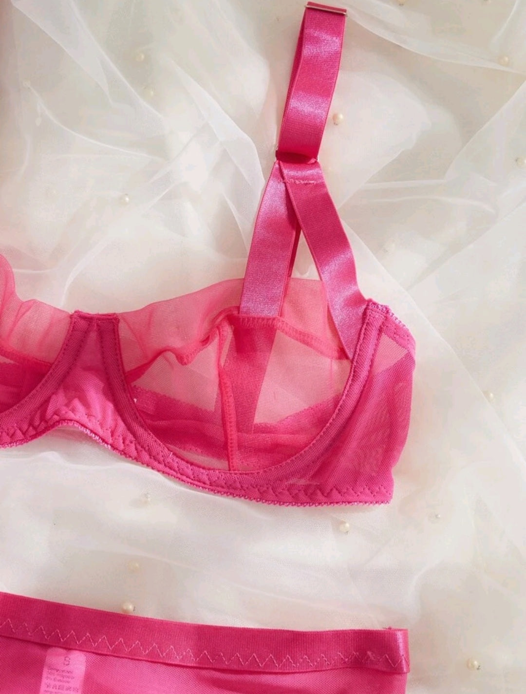 -Se puede ver a través de la mallita y el encaje ("transparente").