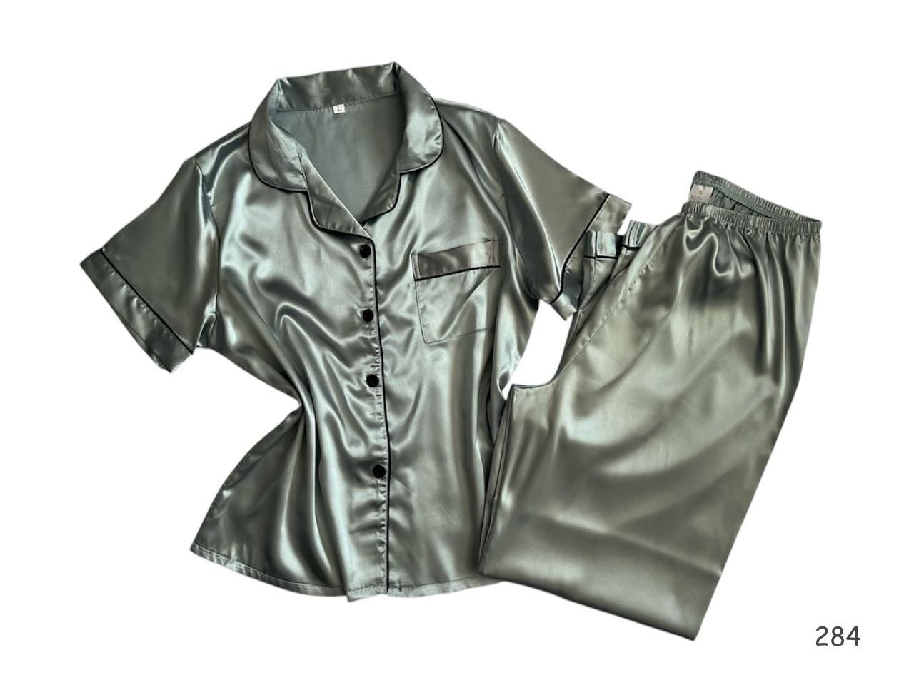 Pijama de satín con línea decorativa