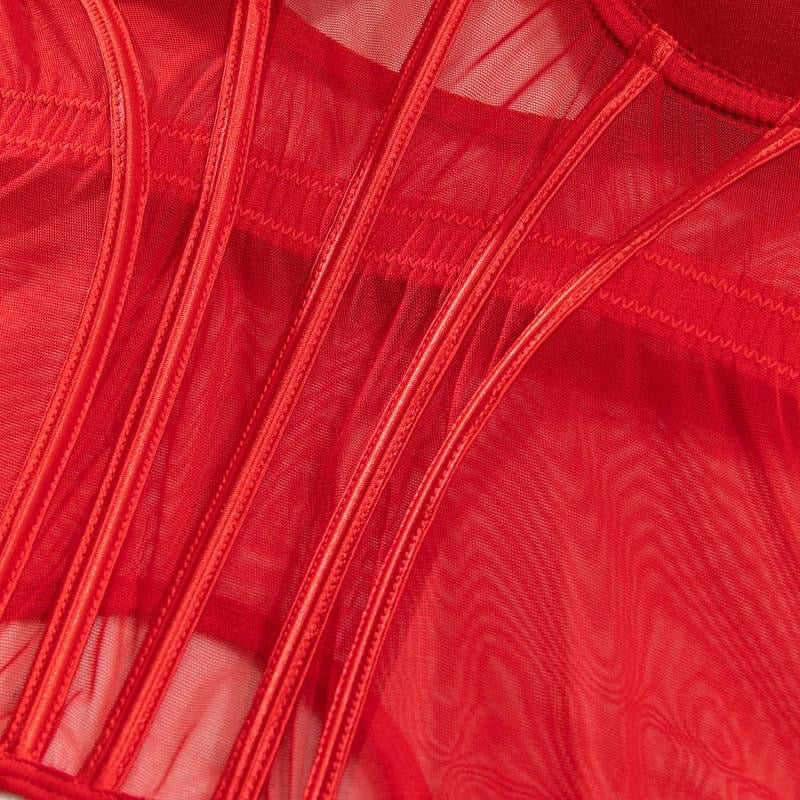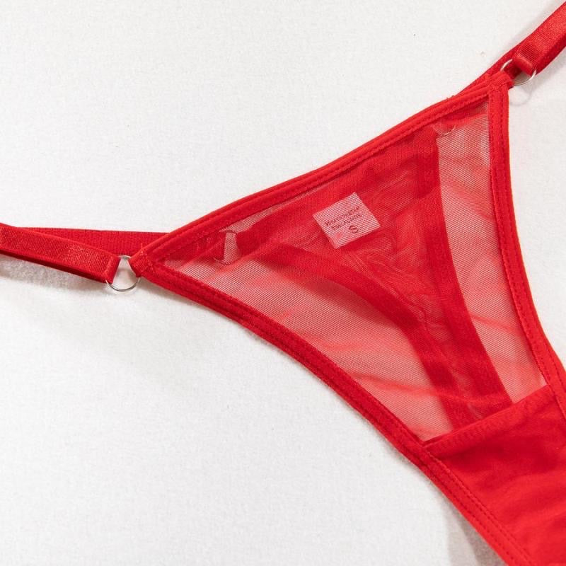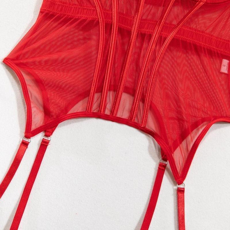 Set de 4 piezas. Bustier, pantie y 2 ligas.