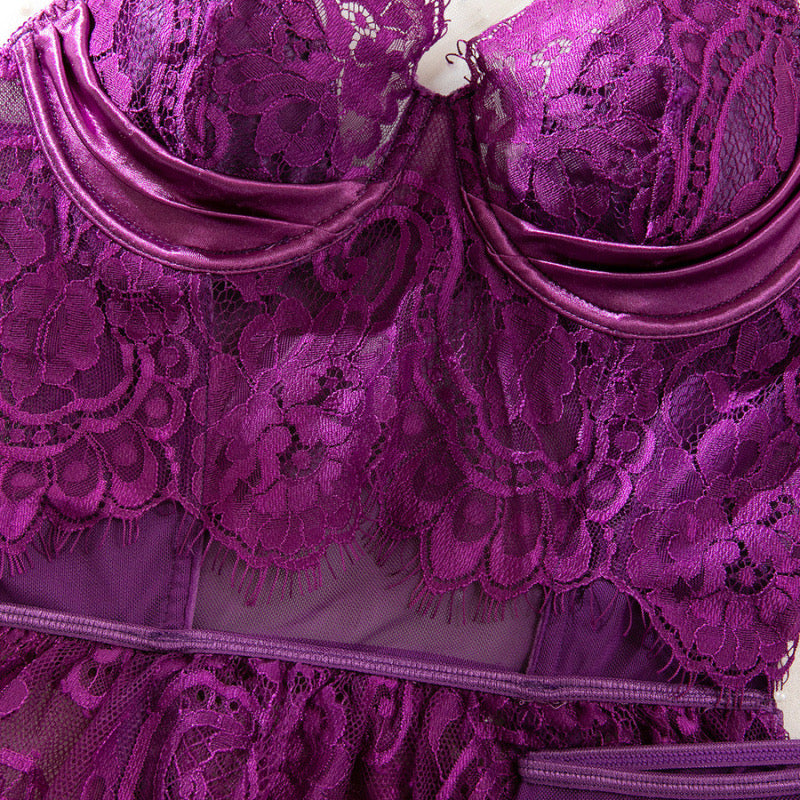 Tipo blusa de encaje con pantie y medias